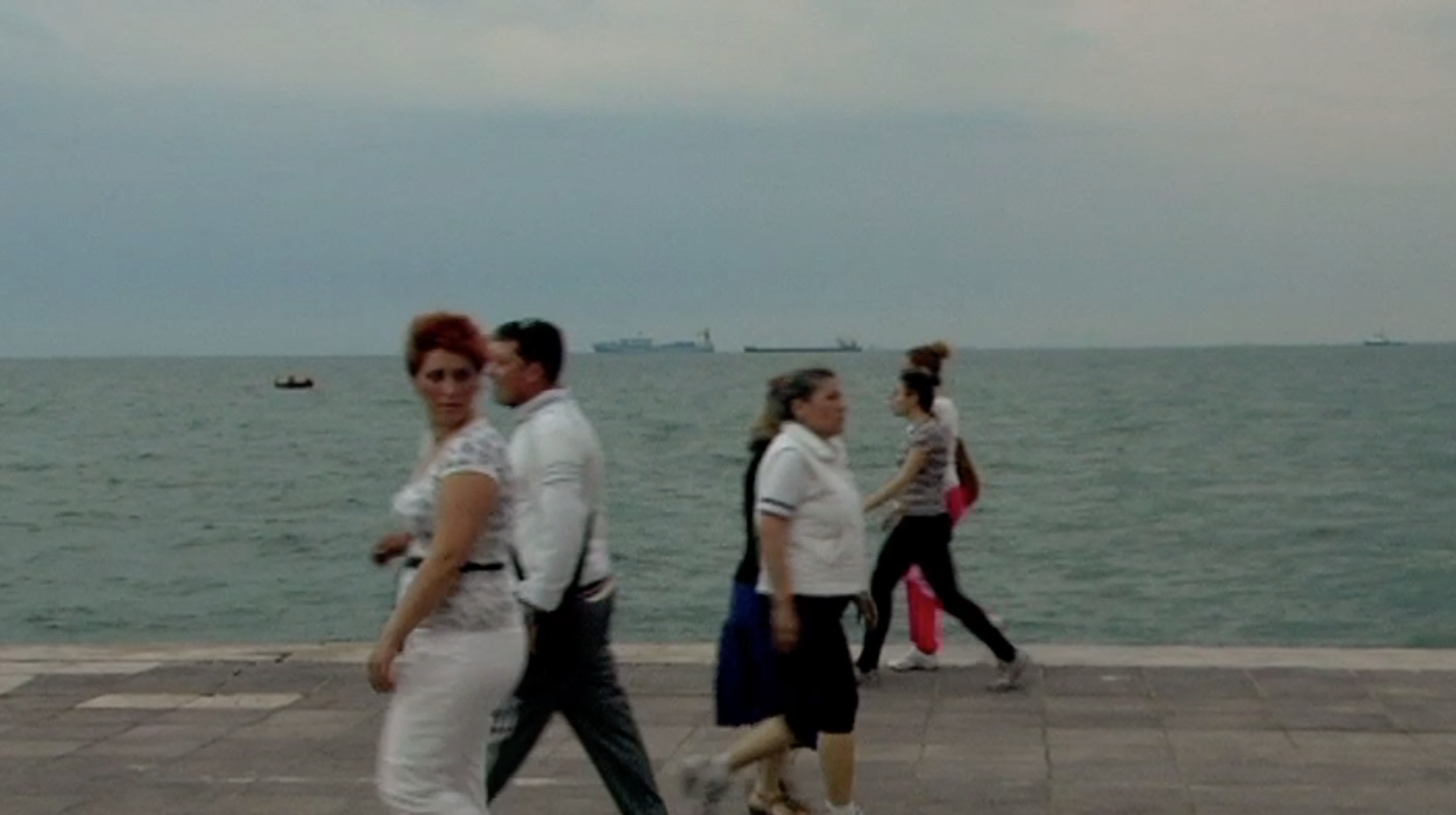 Video made by Diego Ongaro Sound Edit & Mix by Julien Ngo TrongDV, 5 MIN, 2011Dusk falls on a seaside promenade. Pedestrians cross each others on their way to somewhere else.